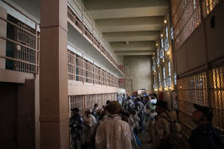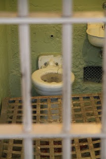 Tijdens de rondleiding hebben we van alles gehoord over de ontsnappingspogingen die gedaan waren (maar waarvan er geen hadden geleid tot succes), wat de gevangenen zelf als ergste ervaren hadden (dat je het geluid van de lachende mensen uit SF kon horen als de wind goed stond, zie de foto hierboven). En het was natuurlijk gewoon ook grappig om eens een gevangenis van binnen te kunnen bekijken. Je zou maar naar de wc moeten gaan terwijl iedereen mee kan kijken. Alleen dat laatste al is een goed argument om er nooit te moeten willen belanden.