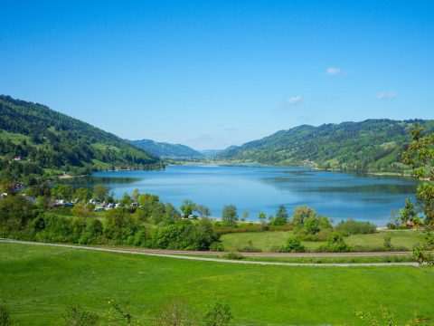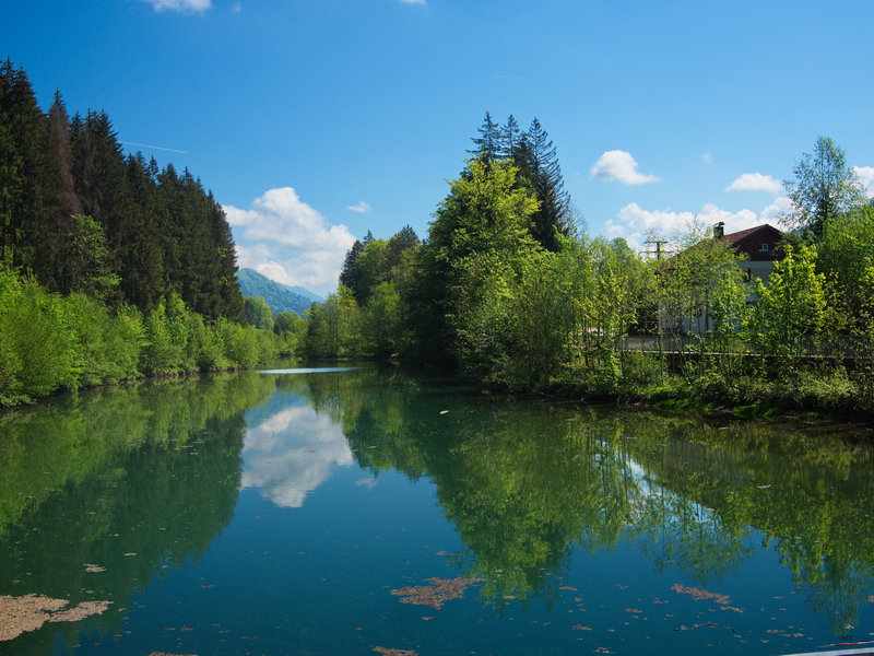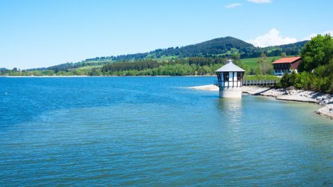 Rond een uur of 10 vertrok ik vanuit mijn standplaats Knottenried, een klein dorpje in de Allgäuop bijna 1000 meter hoogte. Omdat ik vrij hoog zit mag ik eerst 300 meter dalen; tot ik bij de Alpsee ben. Hier aangekomen sla ik rechtsaf, en fiets ik een flink stuk parallel aan het grootste natuurlijke bergmeer van de Allgäu.
