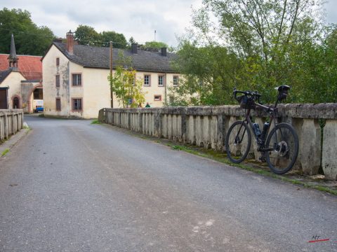 Na Rommersheim kwam ik door het wonderschone natuurgebiedje ‘Schonecker Schweiz’. Hier reed ik door erg mooie donkere bossen langs het riviertje, met redelijk steile wanden links en rechts. Ik fietste ik ook grotendeels over halfverharde paden. Gravelpaden, maar dan wel met een soort goedje nog een soort van aangestampt. Op zich prima te fietsen met mijn race-slicks, al moest het tempo wel iets omlaag om ze niet stuk te rijden op de vele takken/dennenappels/stenen etcetera.
