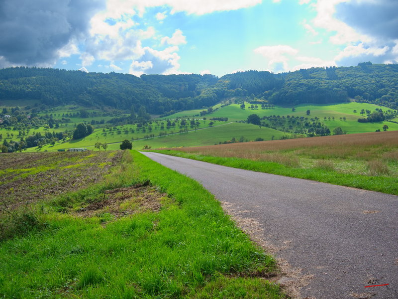 Na het voortreffelijke ontbijt uiteindelijk tegen half 11 op de fiets gestapt. Ik had een route gemaakt die eerst een stukje naar het noorden zou voeren tot ik bij Rommersheim het Nimstal in zou rijden. Hierbij kreeg ik al gelijk een klimmetje voor de kiezen om de benen op te warmen.
