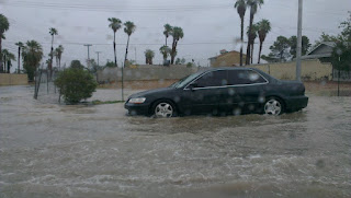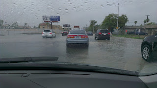 Op sommige plekken stond het water wel 30cm hoog, putten stroomden over, auto’s spoelden weg (dat laatste hebben we later pas op TV gezien). Wij waren heeeeel blij dat we op de plaats van bestemming waren. Gelukkig konden we daar redelijk veilig komen, omdat de wegen middenin een stuk hoger liggen dan de buitenste banen. Ben je dan even blij dat een normale doorgaande weg in Las Vegas 5 baans is.
