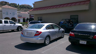 Een klein uurtje later stonden we alweer bij het autoverhuurbedrijf. De dame die ons daar hielp wilde ons direct een dikke vette SUV aansmeren, toen Marcel vroeg of hij even een paar auto’s mocht passen. Hij mocht overigens best passen, maar zou echt veel comfortabeler zitten in een SUV, aldus haar. Oh ja, en onze bagage (3 sporttassen en 2 rugzakken zouden ook echt met geen mogelijkheid in een mid-size auto passen (grootte van een Toyota Corolla, Seat Leon). Uiteindelijk is het gewoon een mid-size Honda Civic geworden. En oh ja mevrouwtje… het past meer dan prima.