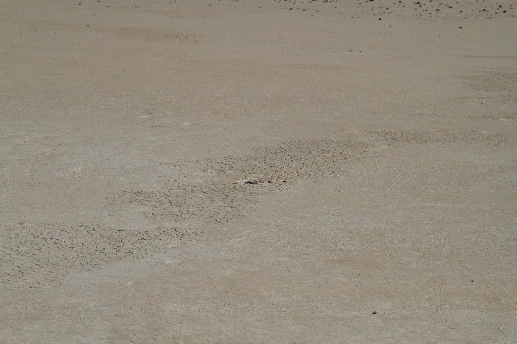 Hier laat de grond goed zien hoe warm het er is, er zitten allemaal barsten in door het uitdrogen.