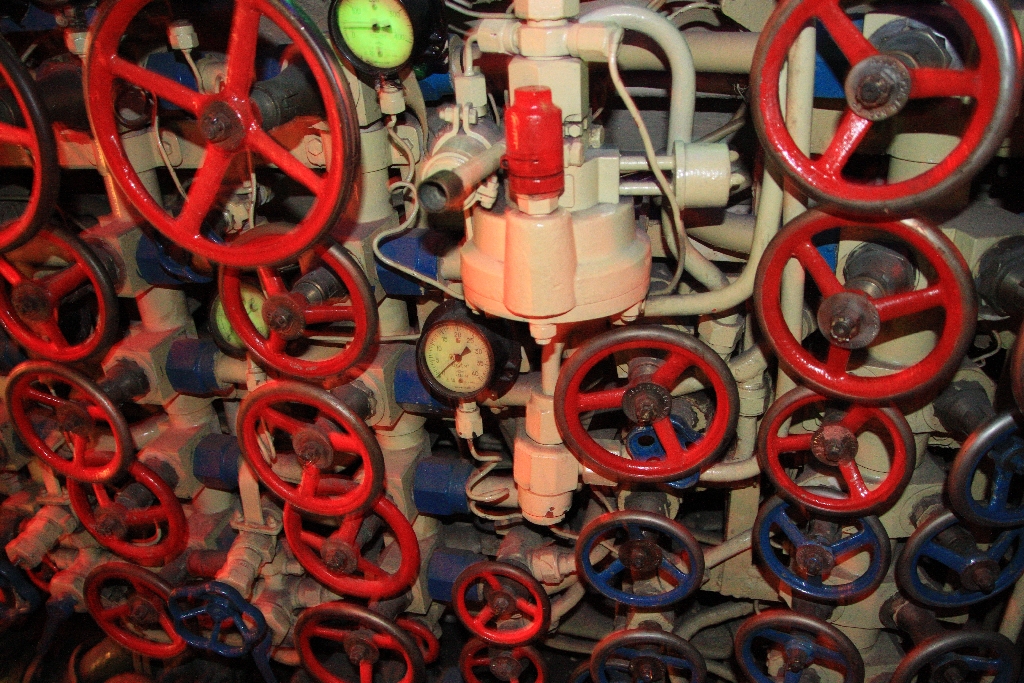 En weer veel wieltjes om aan te draaien (wat niet mocht, want het schip was nog operationeel):