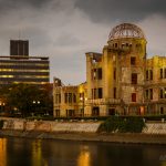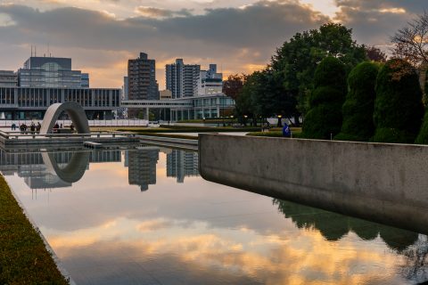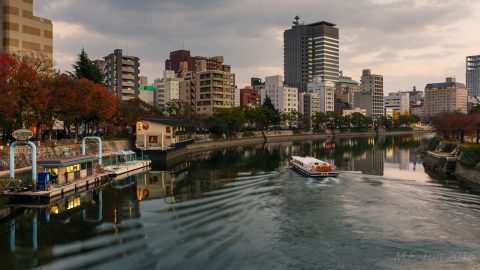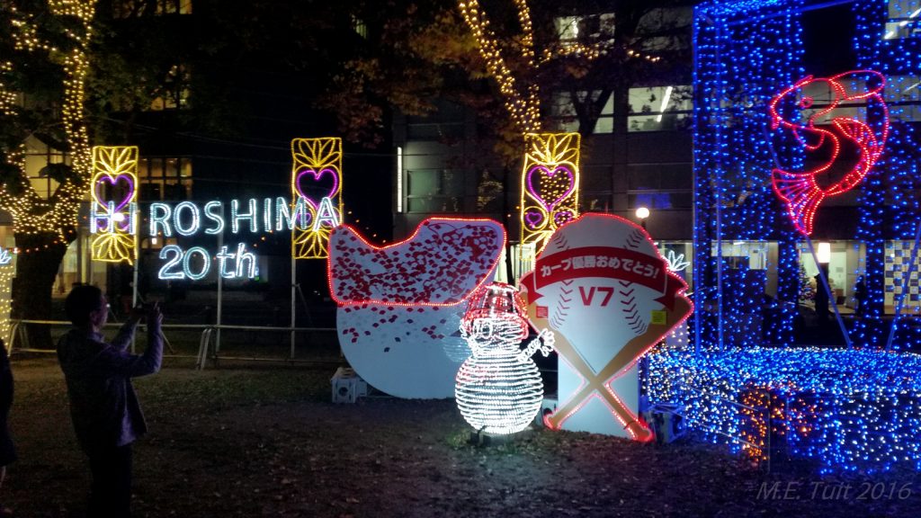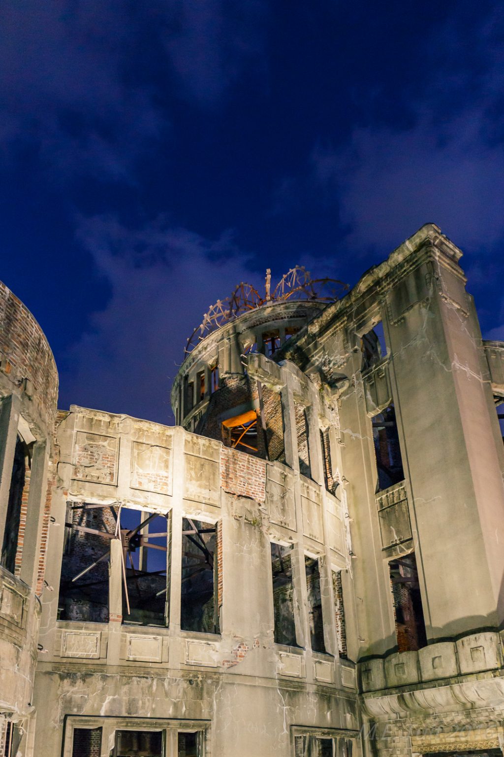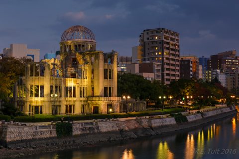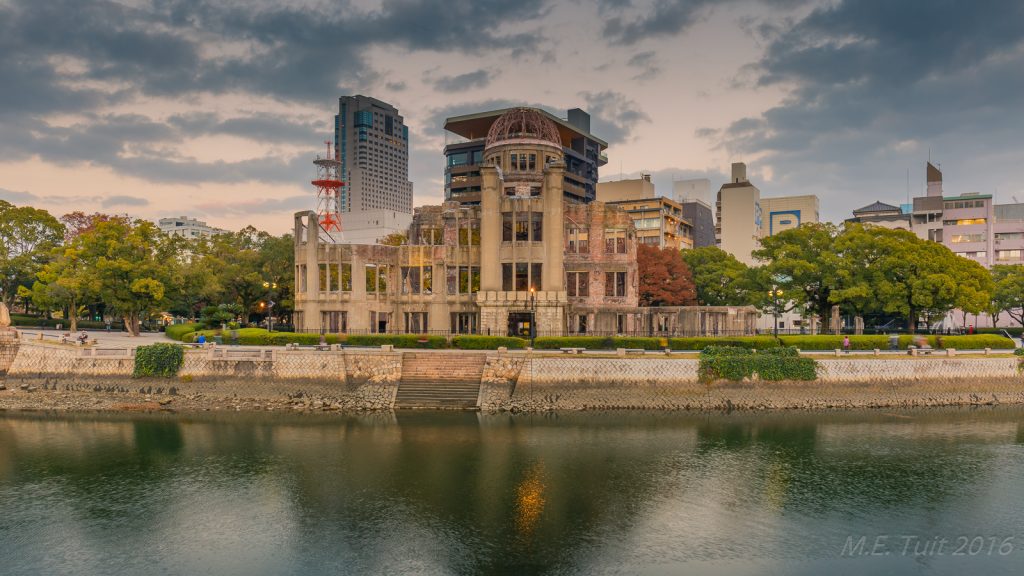 Er waren slechts een aantal gebouwen dat overeind blijf tijdens de bom, en de a-bomb dome is er eentje van. Dit gebouw hebben ze niet gesloopt, en het maakt nu deel uit van het vredespark. Hier heb ik met de schemering nog wat rondgelopen om foto’s te maken, waarna ik via een restaurant weer terug kwam bij het hotel.