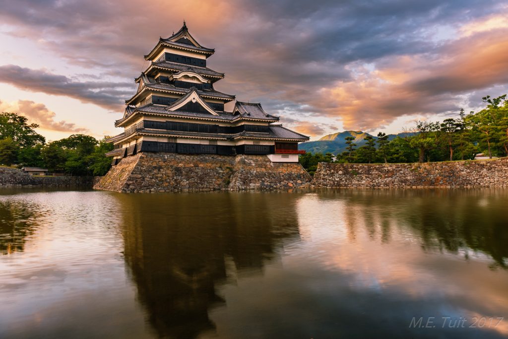 Ons hotel voor de komende 2 nachten, Matsumoto Hotel Kagetsu, ligt vlakbij het beroemde kasteel van Matsumoto. Deze bezienswaardigheid hebben we al snel gevonden. We zijn er net op tijd voor zonsondergang, want Marcel wil hier graag foto’s maken. We besluiten vandaag niet uiteten te gaan, daar hebben we vandaag geen zin in, dus het wordt een makkelijke hap uit de 7-Eleven.