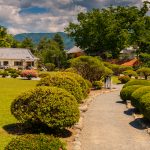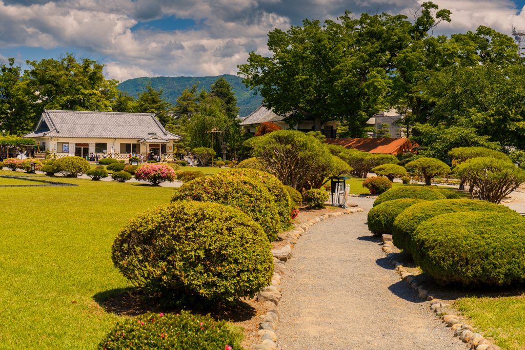 Het grootste minpunt is echter dat je op je sokken naar binnen moet en dat al het hout waar je op liep spekglad was. De traptreden in het kasteel zijn soms tot wel een halve meter hoog en de combinatie van dat alles vraagt om ongelukken. Zeker voor oudere mensen is het geen aanrader (al zijn oudere Japanners wel echte die-hards, hoor)!Nadat we het kasteel weer uit zijn genieten we nog even van de ruimtelijke tuin die erbij hoort.
