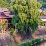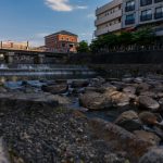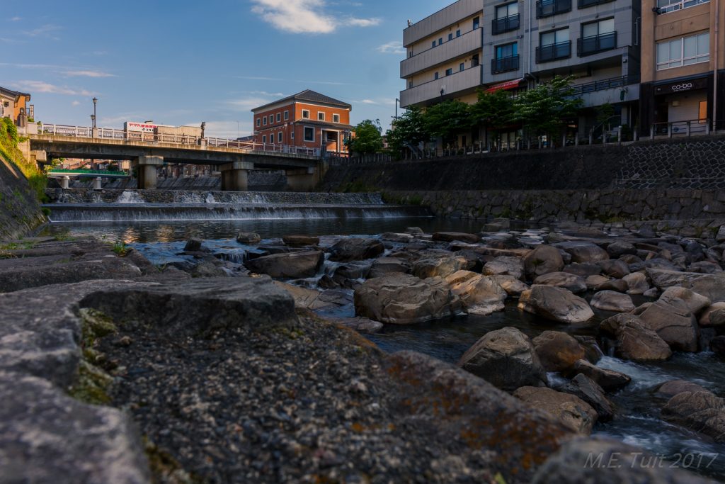 Op de terugweg lopen we langs de Miyagawa rivier, waar we onder andere even kijken naar een reiger die aan het vissen was. De vissen proberen tegen de stroming in via de rotsen met een mini-waterval naar een hoger gelegen deel van de rivier te komen. Zeker zes van de tien vissen worden door de reiger als verse sushi opgeslokt, tot hij verzadigd is en op zoek gaat naar een plaats om te rusten.