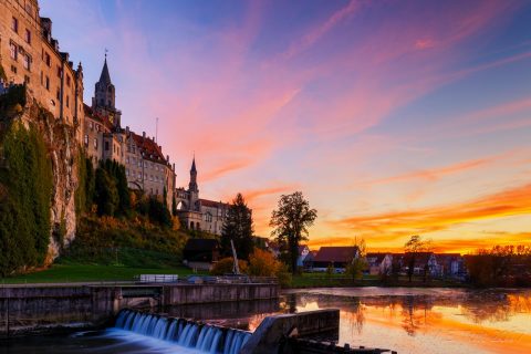 Nog wel een hoogtepunt vond ik het kasteel van Sigmaringen. Dit torent hoog boven de stad uit, en er is ook een uitkijkpunt waar je er mooi tegen aankijkt. Hier ben ik ‘s-avonds nog even terug geweest om het kasteel met een erg mooie zonsondergang te fotograferen.