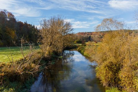 Vandaag helaas een wat minder spectaculaire wandeling. Vanuit Sigmaringen loopt de route nu namelijk richting het Noorden en heeft het dal van de Donau verlaten. In eerste instantie gaat de route nog door Sigmaringen en langs de rand, maar uiteindelijk kom je na het oversteken van een paar heuveltjes in het Laucherttal. De Lauchert is een klein kabbelend zijriviertje van de Donau, in een erg breed door heuvels begrenst dal.