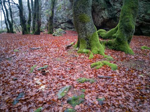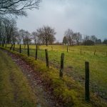 Ik volgde nu de route wel volgens de beschrijving tot aan het dorpje Kalterherberg. In eerste instantie nog door bos, boven de Rur, maar uiteindelijk ook weer door boerenland met vooral heel veel paarden. Omdat ik eerder al een flink stuk om was gelopen, en ik niet wist hoever, besloot ik aan het einde van Kalterherberg een stuk af te snijden omdat ik niet voor donker pas bij de auto terug wilde komen. Zodoende kwam ik via een geasfalteerd fietspad uiteindelijk bij een brug om de rivier de Rur weer over te steken. Hier dook de route weer het bos in, en het ging nu steil omhoog richting het Kreuz im Venn. Dit is eigenlijk niks meer en niks minder dan een groot christelijk kruis bovenop een bergtop. Het kruis deed mij eigenlijk vrij weinig, maar de omgeving ervan was best mooi. Er lagen best mooie rotsformaties en de bomen hadden allemaal mooi groen mos. Het viel me hier overigens ook op dat de route parallel liep met een Belgische Grande Randonnée: de GR56.