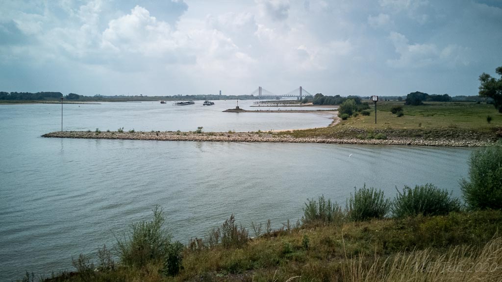 Tot aan Ewijk zou ik de Waal aan de zuidkant blijven volgen. Erg afwisselend met kleine dorpjes en uiterwaarden. Bij de brug waar de snelweg A50 ook de rivier oversteekt ging ik ook naar de overkant. Het landschap werd hier nog afwisselender. De uiterwaarden hier bestonden uit allemaal kleine natuurgebieden, waardoor het geheel een redelijk wild uiterlijk kreeg. Via een schiereilandje bij Lent ging ik ook langs Nijmegen, maar doordat ik aan de verkeerde kant van een dijk fietste zag ik er verder niet heel veel van.