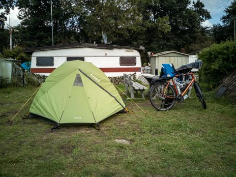 In Henstedt-Ulzburg ging ik even wat inkopen doen, en heb ook gelijk even geluncht bij een bakkertje. Nadat ik hiermee klaar was ging het vervolgens via een mooi goed fietspad (dat op een voormalig spoortalud is aangelegd) richting Wakendorf II (what’s in a name…), waar ik aankwam op een camping met een prachtig tentenveld, waar ik alle ruimte had.