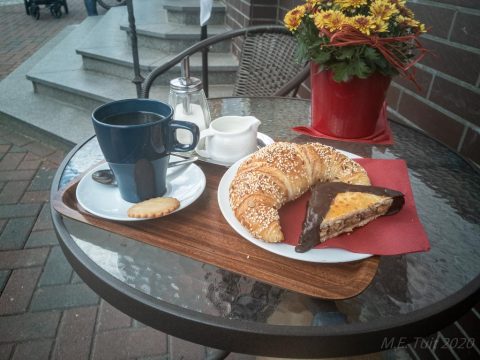 Lunchen deed ik in Herpstedt bij een bakkertje, waar ik wederom 2 heerlijke broodjes heb gescoord met een kop koffie. Hier ontdekte ik ook een nieuwe favoriet: de zogenaamde Nusseneck. Heerlijk fietsvoer.