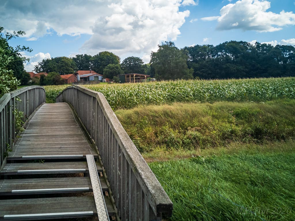 Langste afstand van de vakantie so far… 110 kilometers van Steinbild naar Dötlingen. Ook de eerste rit dat ik kennis maakte met de beruchte kwaliteit van sommige paden op de Hanzefietsroute. Die was soms dusdanig dat mijn snelheid niet boven de 12 km/u uitkwam, omdat ik bang was dat anders mijn fiets volledig uit elkaar zou trillen. Ik vond het het echter wel waard, over verlaten bospaden rijden vind ik veel leuker dan over een retestrak geasfalteerd paadje langs een snelweg.