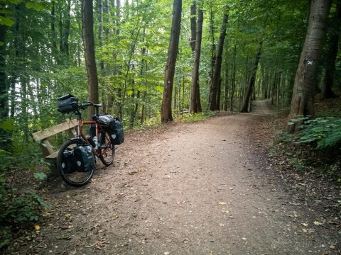 Dit Wald is ook precies het stuk dat zorgde voor één van de mooiste stukken van de route tot dusver. Na het verlaten van de camping ging het bijna rechtstreeks naar het bos, en eenmaal in het bos ging het rustig klimmen, en af en toe ook weer dalend, richting ruim 300 meter boven Alblasserdam. Dit ging voornamelijk over best goede brede boswegen, en reed dus lekker door. Daarnaast was het ook nog niet zo heel warm omdat ik redelijk bijtijds was vertrokken.