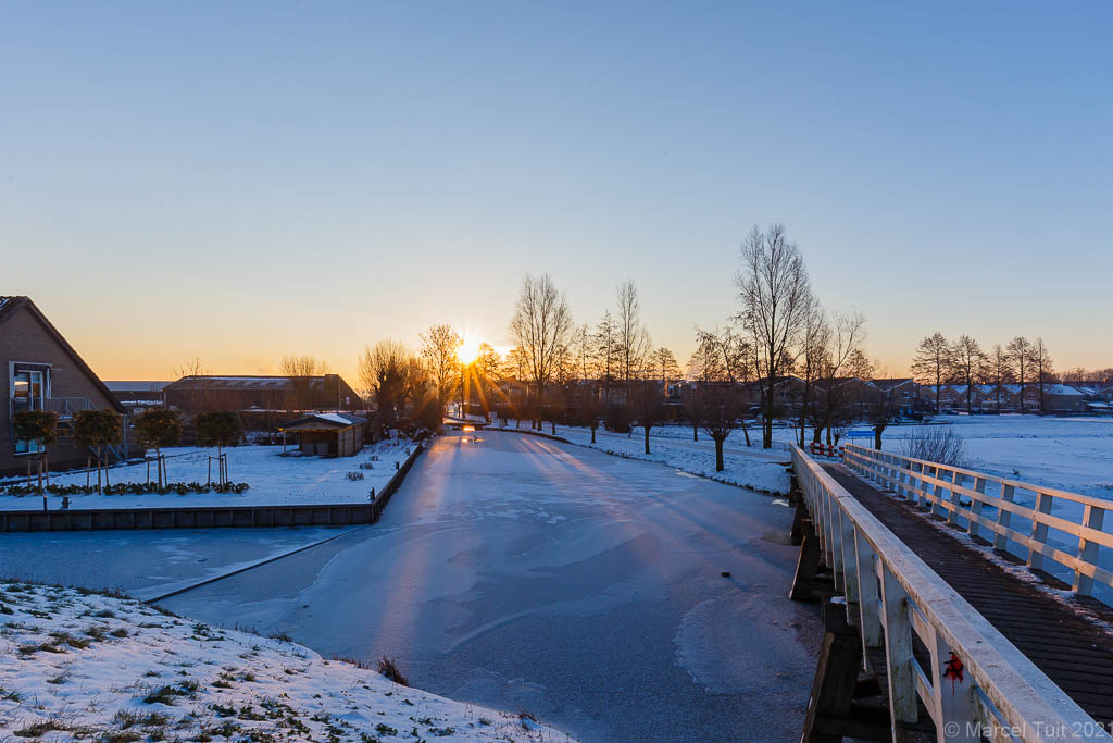 Deze weersomstandigheden moest ik natuurlijk zeker een keertje gaan benutten met de camera, en dat heb ik dus ook afgelopen donderdagochtend tijdens zonsopgang gedaan. Ik was, eenmaal ter plaatse, zeker niet de enige fotograaf; maar aangezien ik in de buurt woon hoefde ik niet zo heel nodig in de rij aan te sluiten om een cliche foto vanaf het bekende steigertje te maken 😉