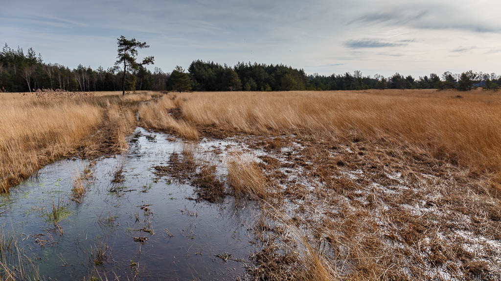 Het was onderweg ook te merken dat dit landschap in het verleden als een woestenij werd beschouwd. Dit was onder andere goed te merken aan sommige ondergelopen paden waarbij ik best ver het bos of de heide in moest om eromheen te gaan. Probleem was hierbij dat ik hier ook allerhande geulen, sloten en beekjes tegenkwam; dus ik was stiekem wel blij met mijn zevenmijls-benen. Ik moet bekennen dat dit, samen met een stuk verderop het mulle zand, sommige stukken best vermoeiend maakte. Is niet erg, maar ik kwam uiteindelijk dus niet meer zo fris als een hoentje aan bij de auto in Reusel.