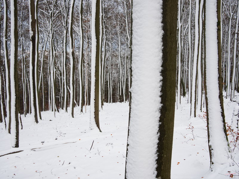 Ik heb maar 2 dagen, dus het moest niet al te ver van huis zijn. Gelukkig ben ik in nog geen 3 uur op de plaats van bestemming; de parkeerplaats bij het bezoekerscentrum van Nationaal park Eifel in Rurberg. Vanaf hier wandel ik een tweetal stuwdammen over, en dan gaat het steil omhoog een bergrug op (de Wilder Kermeter). Deze bergrug ligt pal tussen de Rursee en de Urfttalsperre, en ik loop een tijdje vlak onder de toppen. Erg fijn wandelen door een prachtige natuurlijke omgeving, met ook een erg mooi bos. Tel daarbij op de hoeveelheid sneeuw die boven de 450 meter snel erg dikker werd; en het was gewoon erg tof wandelen. Opvallend is het grote aantal waarschuwingsborden met de mededeling dat dit een heel gevaarlijk bos is, omdat ze de natuur de vrije hand geven. De kans dat er bomen of takken naar beneden komen zetten is zeer reëel, dus het is Verboten om te lang op 1 plek te blijven staan voor bijvoorbeeld pauze.